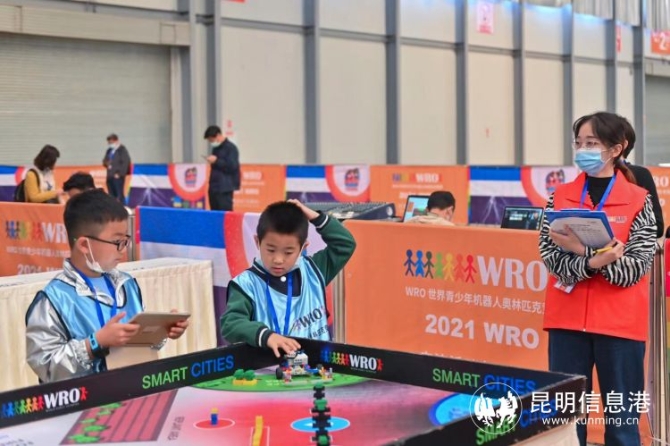 昆明信息港讯 记者龙泉积 4月11日,WRO世界青少年奥林匹克竞赛、MWRC玛塔世界机器人大赛2021春季交流活动(云南站)在昆明国际会展中心(3号馆)举行。现场,竞赛分为初小组、小学组和初中组,共有约300名少年儿童参加,遴选出的优胜者,将参加相应的全国竞赛。