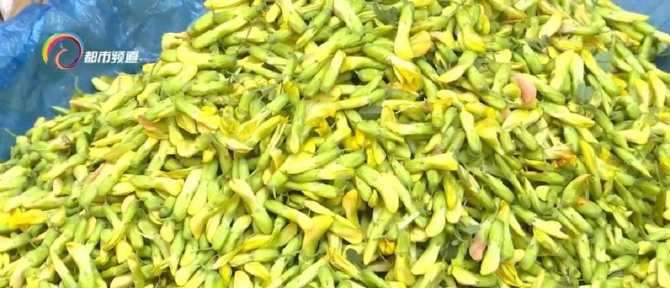 香椿商户:“我卖把数,十块钱三把,价格跟以前差不多,只是现在扎得大把一点,以前是一小把。现在快没有了,还有两三天、三四天就没有了。”