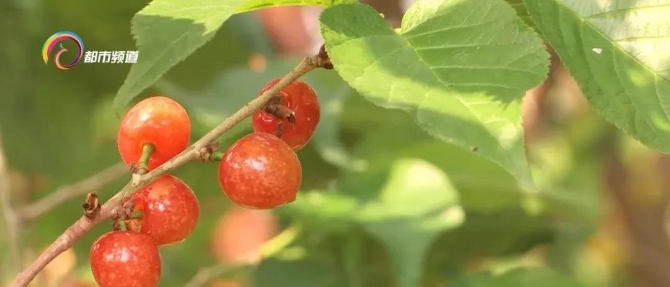 樱桃果儿缀在绿油油的树叶间,一颗颗色泽鲜艳,晶莹剔透。早熟的樱桃树大棚共有120多棵樱桃,樱桃树不高,游客伸手就能摘到多汁的樱桃。熟透的樱桃红透发亮,黄色的绿色的小樱桃正在努力成长,迎接成熟季的到来。再过一个星期,这些枝头,便会挂满更多红透了的樱桃。