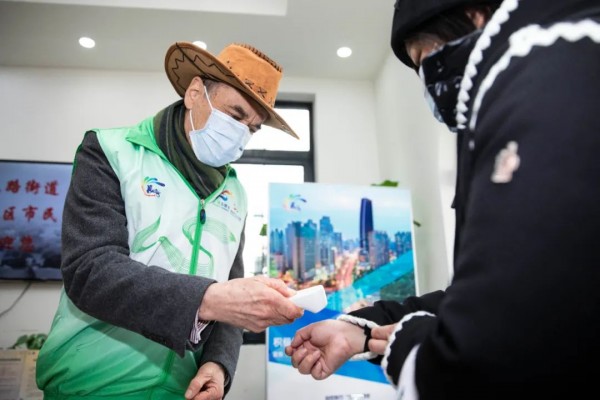 作为志愿者,测体温是老白主要工作之一