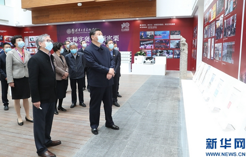 4月19日,在清华大学建校110周年校庆日即将来临之际,中共中央总书记、国家主席、中央军委主席习近平来到清华大学考察。新华社记者 丁林/摄