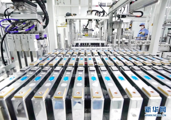 河北省唐山市路北区一家锂电池企业的工人在生产线上工作(2020年11月29日摄)。新华社记者杨世尧/摄