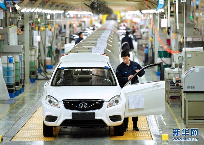 工人在北汽新能源黄骅分公司总装车间内工作(2019年12月21日摄)。新华社记者牟宇/摄