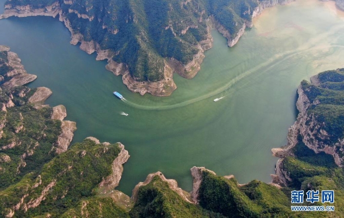 这是在河南济源拍摄的“黄河三峡”景色(2020年9月12日摄,无人机照片)。新华社记者 郝源/摄