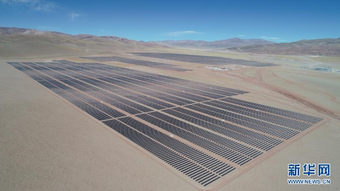 这是2020年5月11日拍摄的阿根廷高查瑞300兆瓦光伏发电项目(无人机照片)。由中国电力建设集团和上海电力建设有限责任公司(上海电建)联合中标的阿根廷高查瑞300兆瓦光伏发电项目位于该国北部胡胡伊省的高原地区,项目场址海拔超过4000米。北部高原是阿根廷最贫穷的地区之一,许多民众日常用电需求无法得到保障。高查瑞光伏发电项目投入使用后,胡胡伊省将摆脱完全依靠外省供电的历史,当地电力负荷的紧张状况将得到极大缓解,有助于促进当地经济发展,改善民众生活。新华社发(上海电建阿根廷高查瑞300兆瓦光伏发电项目项目部供图)