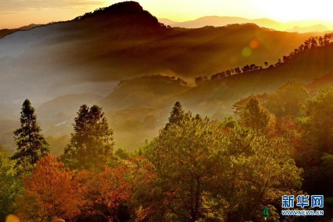 这是福建武夷山齐云峰晨曦(2019年11月17日摄)。新华社记者张国俊/摄