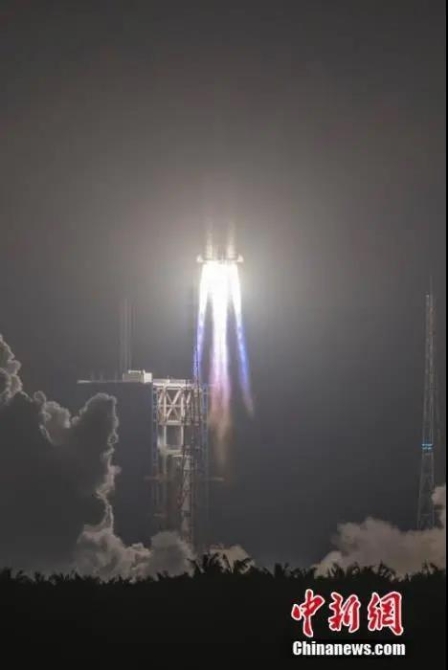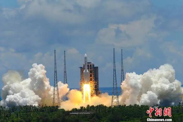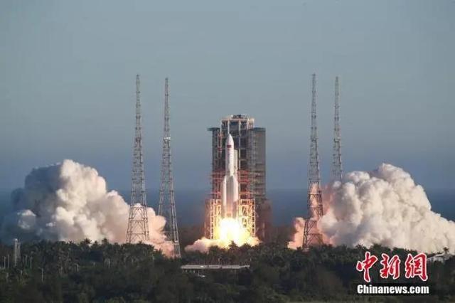 资料图:2020年7月23日,“长征五号”遥四运载火箭托举着我国首次火星探测任务“天问一号”探测器,在中国文昌航天发射场点火升空。郭文彬 摄