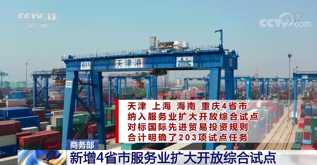 经济稳中向好,开放创新一刻不停。商务部相关负责人介绍,日前,国务院批复同意将天津、上海、海南、重庆4省市纳入服务业扩大开放综合试点,对标国际先进贸易投资规则,合计明确了203项试点任务。