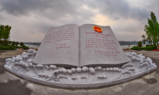昔日化工厂变身的公园里,矗立着长江大保护的纪念雕塑。(湖北日报全媒记者 刘曙松 摄)
