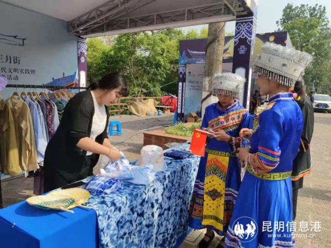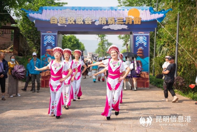 昆明信息港讯 记者杨雁 热闹的民族歌舞表演、深受欢迎的白族三道茶品饮、白族扎染及手工艺品的展示展销……4月26日,来到安宁太平新城光崀大村,丰富多彩又极具特色的活动让人仿佛穿越到了大理白族村寨,感受到大理“三月街”的热闹喜庆氛围。由安宁市太平新城管理委员会、安宁市人民政府太平新城街道办事处主办的2021年新时代文明实践暨首届“白族欢歌荟·情系三月街”白族民俗文化志愿服务活动,于4月26日至27日在太平新城光崀大村举行。