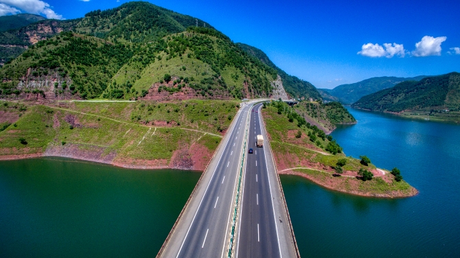 汽车奔驰在新修建的高速公路上 左滨洪摄