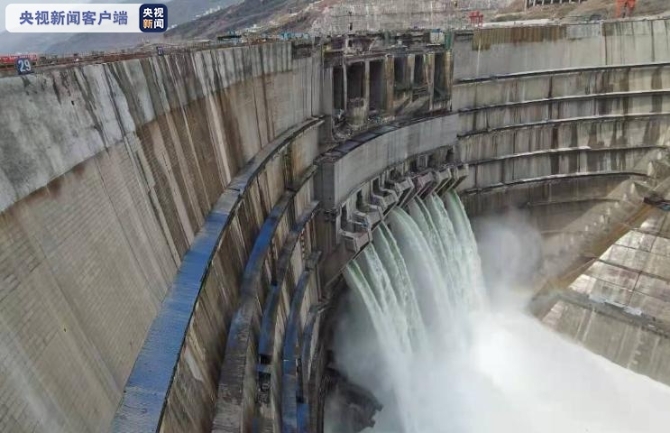 壮观!白鹤滩大坝泄洪深孔首次过流