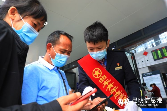 为方便旅客“最后一公里”出行,避免旅客因换乘不及时导致漏乘,昆明局集团组织开展好各车站的站内换乘引导。