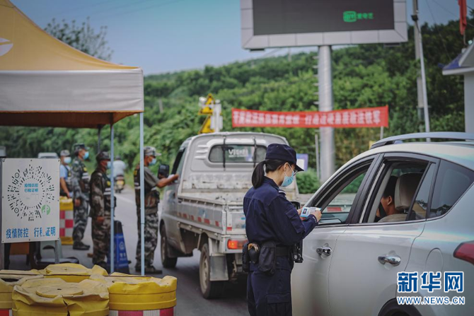 执勤点民警在疫情执勤点对过往车辆及人员信息进行检查。