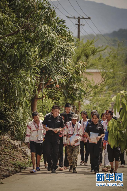 13点,在基诺族村寨,基诺山派出所民警到村中宣传反诈知识。