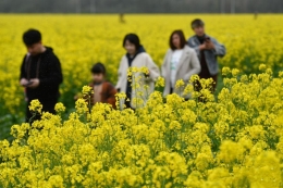 5月3日,行人从贵州省从江县加榜梯田间走过。立夏前后,位于贵州省黔东南苗族侗族自治州从江县大山深处的加榜梯田蓄水丰盈、线条分明。青山环抱着梯田,苗寨点缀其间,在不同的光线下呈现出不同色彩,如诗如画。新华社记者 杨文斌 摄