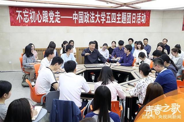 2017年5月3日,习近平总书记来到中国政法大学考察,参加民商经济法学院本科二年级2班团支部开展的“不忘初心跟党走”主题团日活动。