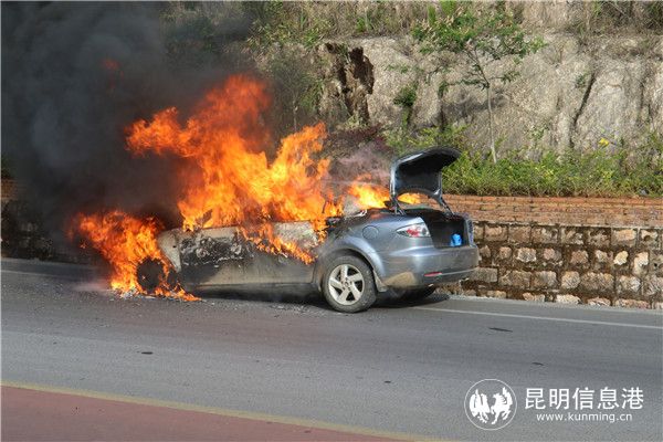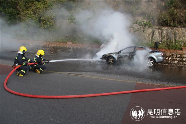 昆明信息港讯 记者劳学丽 通讯员马爱国 5月6日17时左右,红河州个旧市,一辆马自达轿车行驶到个元公路3公里处发生自燃,随后,接到报警的消防员迅速赶到现场后,使用水枪及时灭火,并排除了安全隐患。