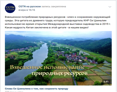 中央广播电视总台CGTN(中国国际电视台)策划制作的《经典里的中国智慧——平“语”近人(国际版)》(第一季)第一集《取之有度 用之有节》通过“中西对话”的形式,由海外受众的角度,从习近平主席讲话引用的经典中阐释中国文化、中国智慧以及中国政府在治国理政中的实践。