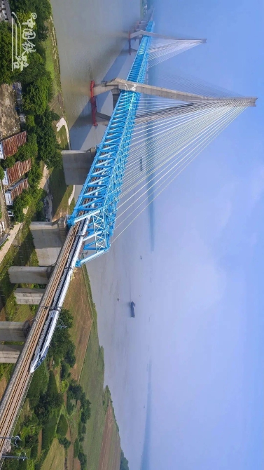 安九铁路鳊鱼洲长江大桥是国内首座设计时速350公里的长江铁路桥。南起九江市,横跨鳊鱼洲,终于黄梅县。大桥全长2760米,南汊航道主跨672米。北汊航道主跨2*140米。为首座大跨度交叉索铁路斜拉桥。