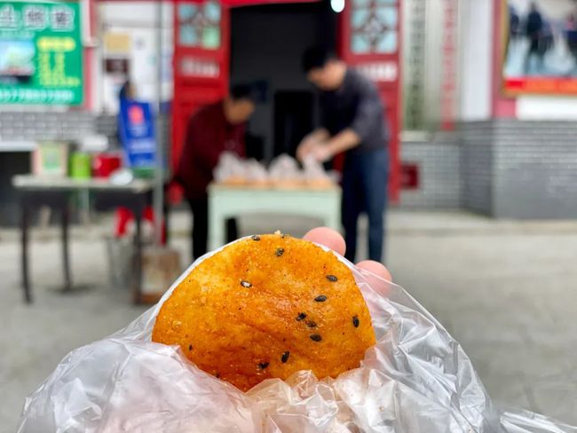 新打的糍粑裹上自家调制的料粉,变得色泽金黄,入手时还温热着,咬一口软、糯、香,还有一层特别的辣。