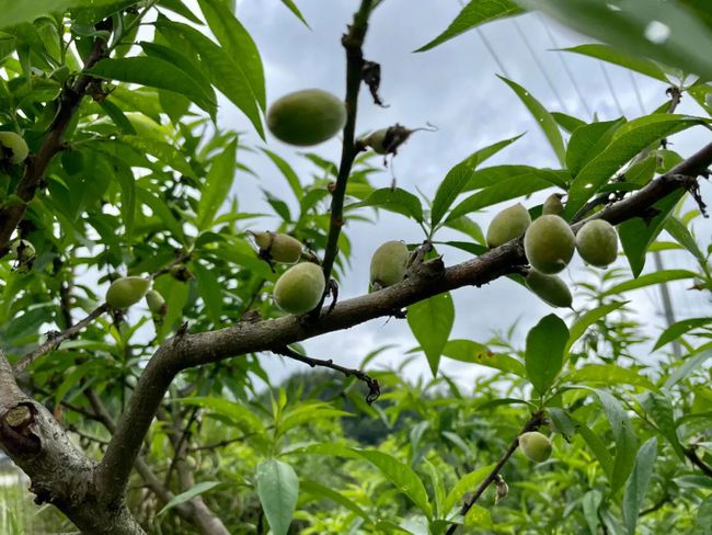 (枝上黄桃青青,果初成,让未来的收获充满期待)