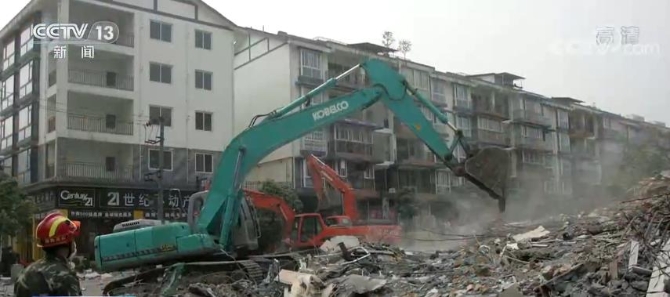 “5·12”地震发生,离汶川约100公里的都江堰市也受到波及。当地设施受损严重,多处房屋发生倒塌,街区一片狼藉。