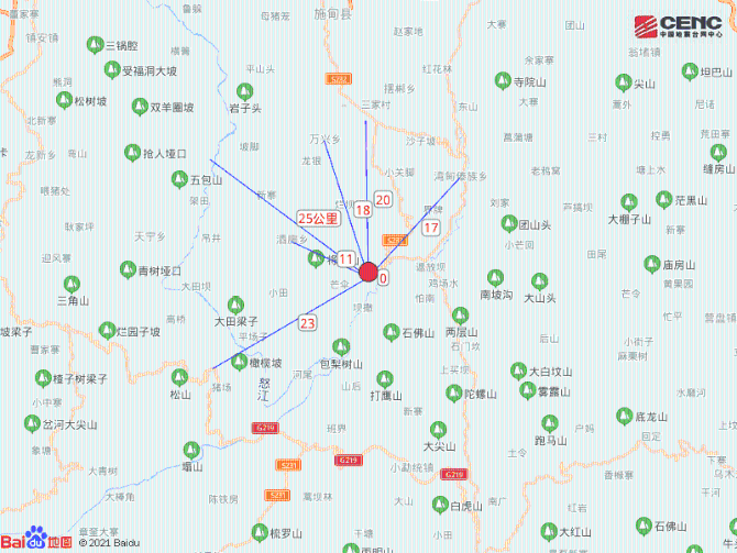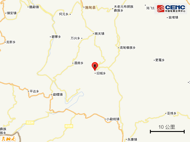 附近村镇:本次地震周边5公里内的村庄有旧城村、农庄、芒梗、蚌塘旺、老由旺、蚌柳、双龙、龙塘、老城子、王家田,20公里内的乡镇有旧城乡、酒房乡、姚关镇、湾甸傣族乡、万兴乡、勐糯镇、碧寨乡。