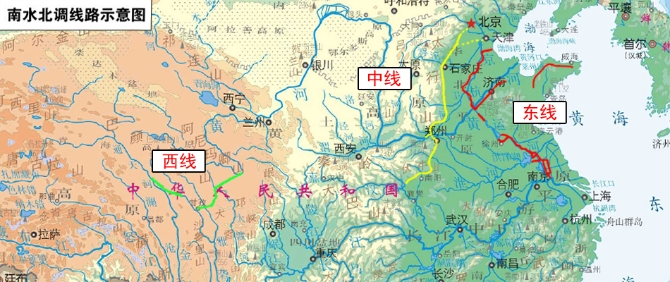 1952年,毛泽东在视察黄河时,首次提出了南水北调的伟大设想。他说:“南方水多,北方水少,如有可能,借点水来也是可以的。”经过近半个世纪的规划论证,最终从50多种方案中选出东、中、西三条调水线路。