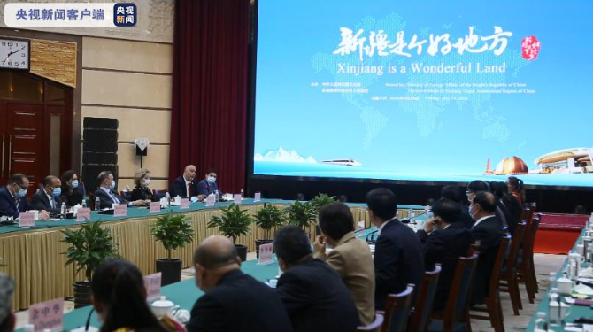 5月14日下午,由外交部和新疆维吾尔自治区政府主办的“新疆是个好地方”交流会在乌鲁木齐举行,拉美和加勒比驻华使节团一行23人参加交流会。