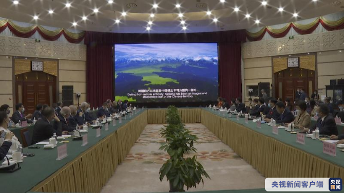 交流会上,新疆维吾尔自治区人大常委会主任肖开提·依明介绍了新疆社会大局持续稳定、经济高质量发展、脱贫攻坚、宗教信仰自由政策等领域的发展情况。与会的新疆专家、学者和基层群众现场发言,通过真实事例和数据,驳斥了美西方反华势力谬论。