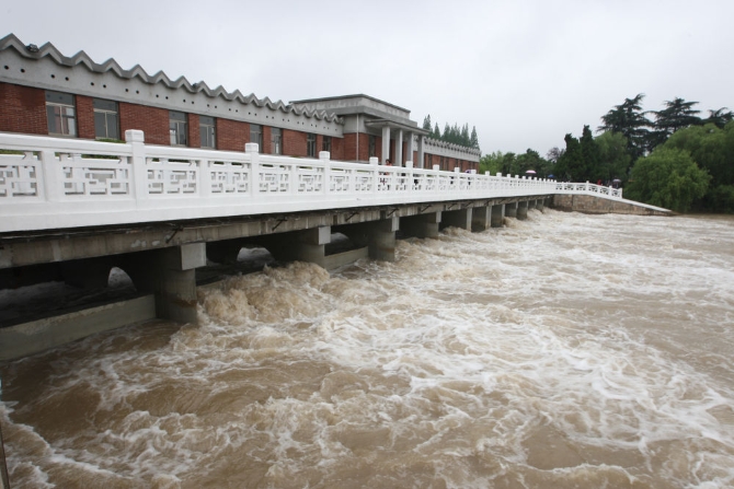 ↑2013年5月30日,南水北调东线工程的源头江都水利枢纽开始试通水。2013年11月,南水北调东线一期工程正式通水。