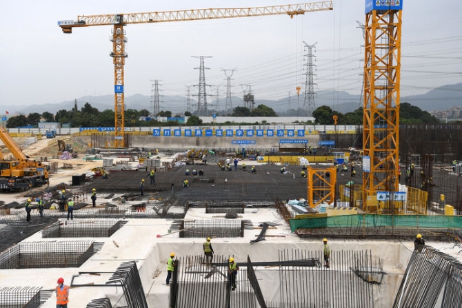 工人在深圳光明科学城启动区项目工地作业(2020年3月12日摄)。 新华社记者 梁旭 摄