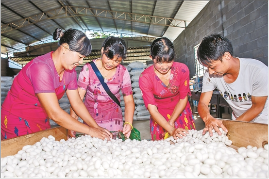 据了解,陇川采取“政府+龙头企业+工厂化小蚕共育基地+农户”运营模式,由企业承担蚕桑产业链中风险最高的育苗和销售环节,将风险最低的种桑养蚕交给农户,既保证了农户的利益,又保证了公司对优质原料的需求。