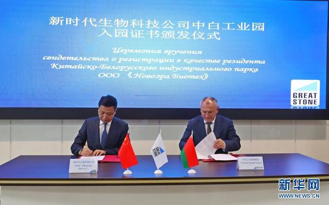 3月18日,在白俄罗斯首都明斯克郊区的中白工业园,工业园与入驻项目代表签署入园协议。新华社发(任科夫摄)