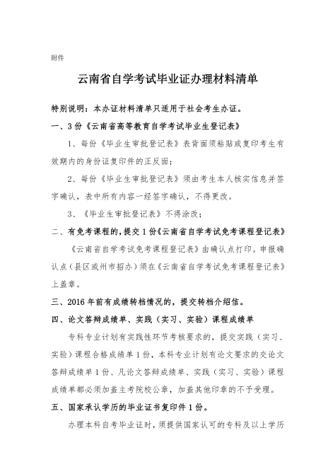 本次申请的考生需在规定的时间内(2021年6月1日至15日),登录云南省高等教育自学考试管理平台(网址:http://zk.ynzs.cn/)进行网上申报,具体操作可在首页下载《考生使用手册》查看。其中,社会考生须选择州(市)直属或县(市、区)招考机构为申报确认点,填写完毕业申请并提交后,于6月15前自行到报名考试时选择的区县招生考试机构(即确认点)申请办理毕业申报确认工作,并提交相关毕业材料。助学单位考生须选择所在助学单位为申报确认点,填写完毕业申请并提交后,在规定时间内自行前往报名时的主考学校或助学机构申请办理毕业证书。