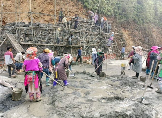 2021年4月底,群众正在修建“共产党万岁”几个大字。