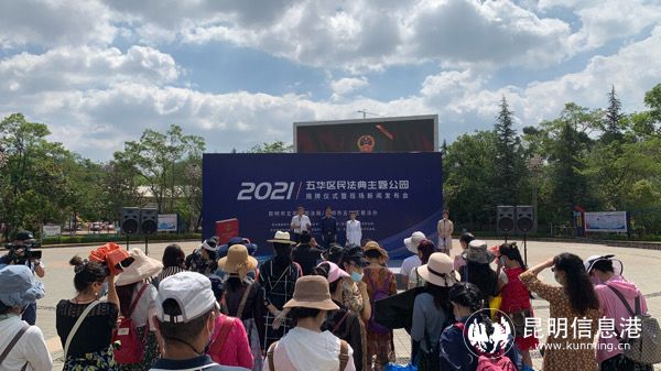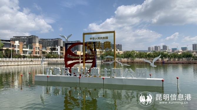 昆明信息港讯 记者合宇聪 20日上午,昆明市首个“民法典”主题公园在五华区月牙潭公园内揭牌。即日起,市民到月牙潭处既能休闲娱乐,又能接受法治文化熏陶,感受法治力量。