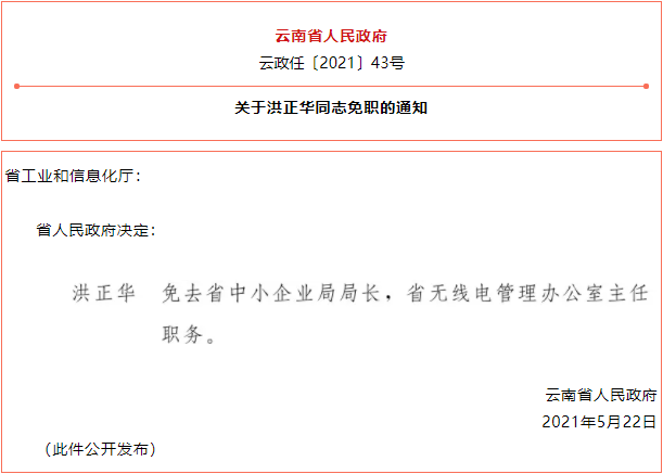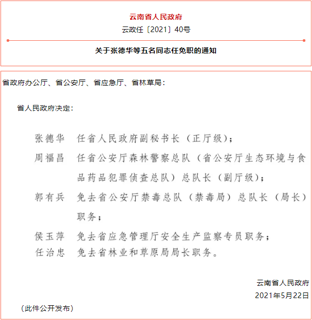 云南省人民政府发布一批任免职通知