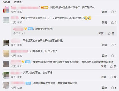 此外,针对快递盲盒,网友也众说纷纭。有的认为要严厉打击快递盲盒的现象,有的表示想到自己买的盲盒是别人的垃圾,“挺膈应的”,还有的表示快递盲盒的商家正是抓住了人们爱占便宜的心态。