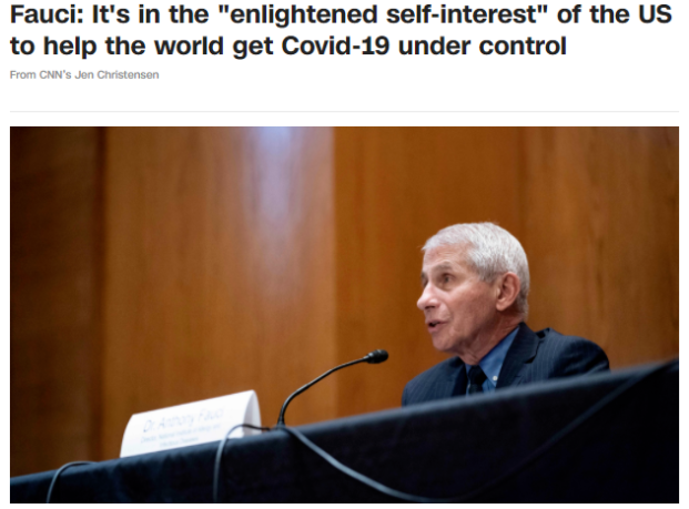 美国“抗疫队长”福奇也表示,虽然美国的高疫苗接种率有助于控制本国疫情,但随着病毒在世界其他地区传播,可能产生的变异株会破坏现有疫苗的保护能力。而要消除这种危险,美国需要向世界提供帮助,“我认为这样做不仅是人道主义和道德责任,也是出于‘开明的利己主义’”。