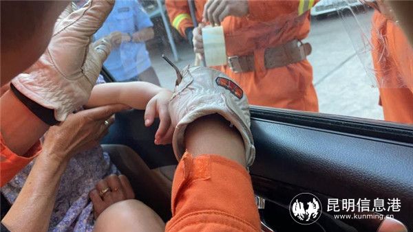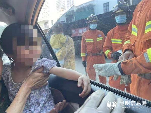 家长降下车窗时致小女手臂被卡缝隙中 安宁消防急速救援