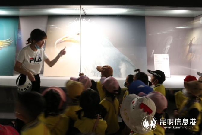昆明信息港讯 记者甘凌菲 通讯员张露萍 为喜迎COP15在昆召开,提高幼儿对保护生物多样性的认识和参与度,了解人与自然和谐共生的重要性,6月1日,在国际儿童节到来之际,盘龙区茨坝幼儿园组织全体师生走进云南省博物馆,参观了“消失中的世界--它们与我们的未来”濒危动物摄影展。