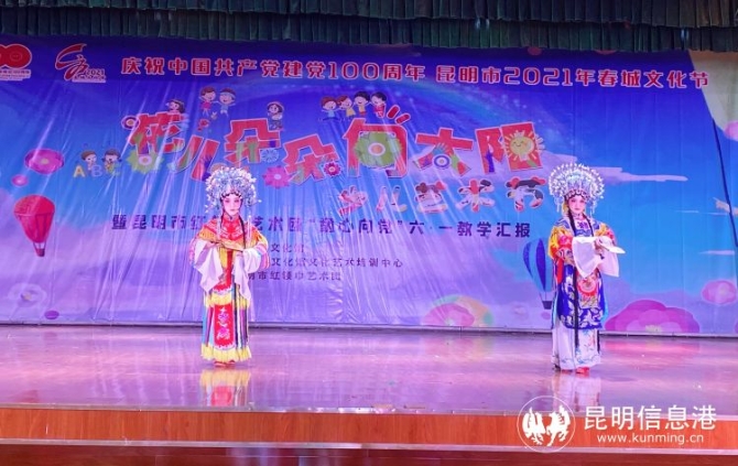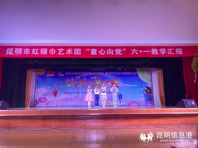 昆明信息港讯 记者张琪蕊 6月6日下午,昆明市红领巾艺术团在西山区文化馆群文剧场举行2021年春城文化节“花儿朵朵向太阳”少儿艺术节-“童心向党”教学汇报活动,10个精彩节目表演获得了现场观众一致好评。