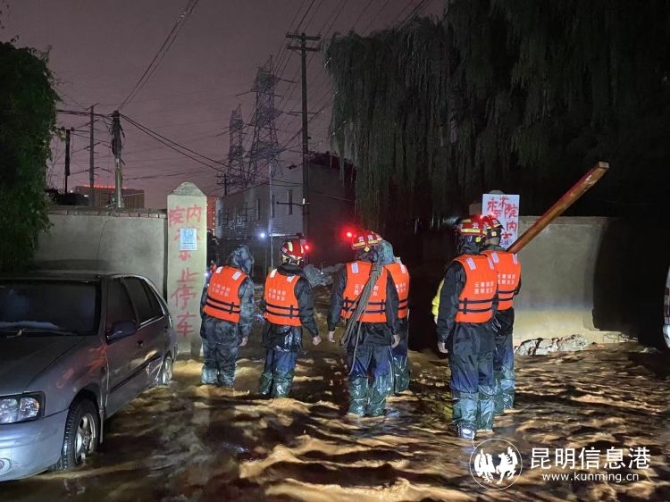 连夜暴雨致昆明部分地区被淹 五华消防冒雨营救被困群众28人