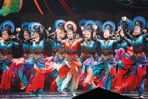 在日前举行的开票发布会上,演员们展示精彩片段。富有西域特色的音乐、色彩鲜艳的装扮与唯美动感的舞步,共同表达着独特的东方美学。记者 方非摄