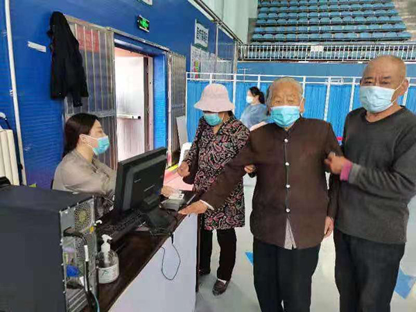 “最近有发热现象吗?”“以前有没有发生过疫苗严重过敏反应?”为保证安全有效接种疫苗,在检测区,医务人员对老人们的健康状况进行了详细询问,并讲解接种疫苗需要注意的事项。