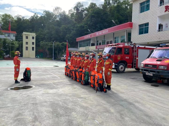 地震发生后,德宏州消防救援支队在盈江前置备勤的3车27人赶赴震中盈江县勐弄乡(目前距离震中还有50公里,约1小时车程)。