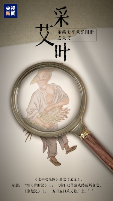 人们采摘艾叶,蒲草,