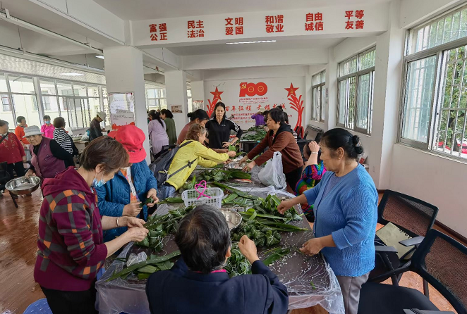 6月11日,龙翔社区妇联开展了端午节主题活动。社区的白发老人、孩童一起包粽子。工作人员将糯米、大枣等材料端上桌,男女老幼们就开工了,会包的、不会包的全都乐在其中。